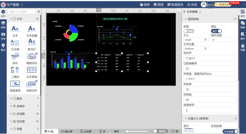 接下来,我们在数据大屏中选择一个组件,如右下角的表格组件: